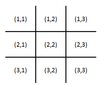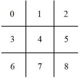 A natural representation of the tic-tac-toe board is a two-dimensional array where indexes are distributed as shown in Fig. 5.4a,